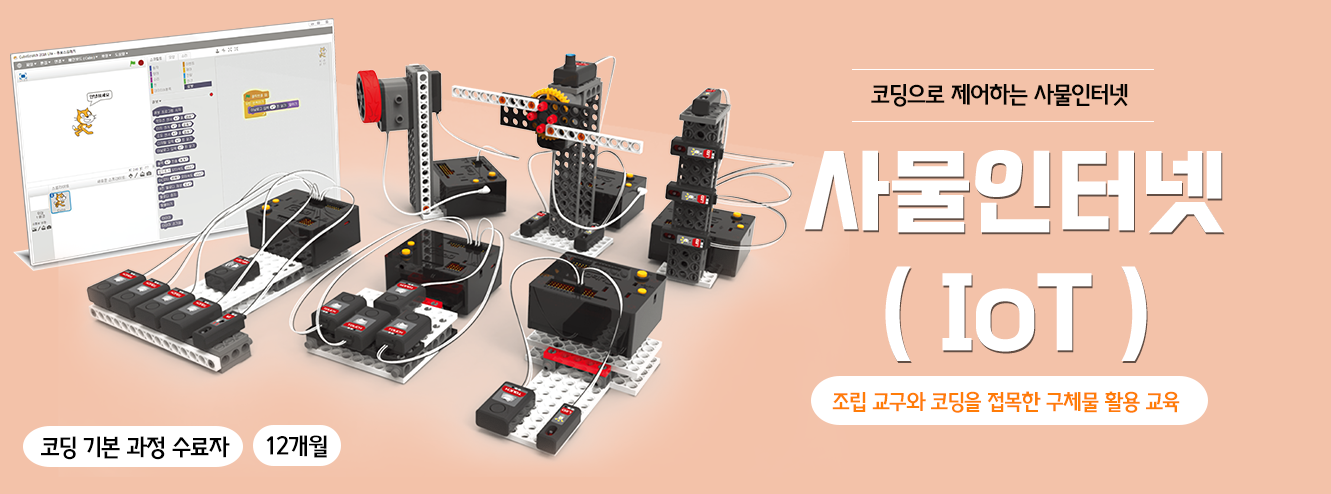 특징 각종 블록과 프레임 빛 센서, 모터 등을 포함한 교구로 스크래치로 코딩하여 각종 기구물을 작동하는 IoT 모형들을 체험합니다.